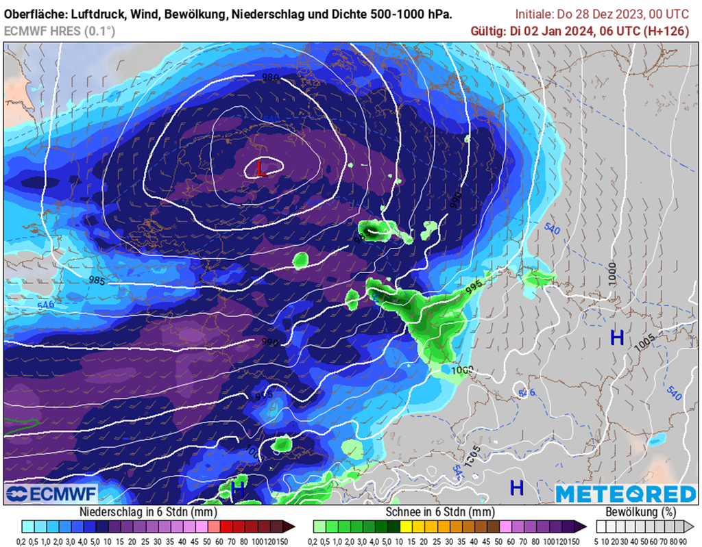 Ein blick auf das neue Jahr bringt laut den aktuellen Mittelfristprognosen keinen nennenswerten Wetterumschwung. Im Gegenteil: Schon am zweiten Tag des Jahres könnte erneut ein atlantisches Tiefdruckgebiet durchziehen.