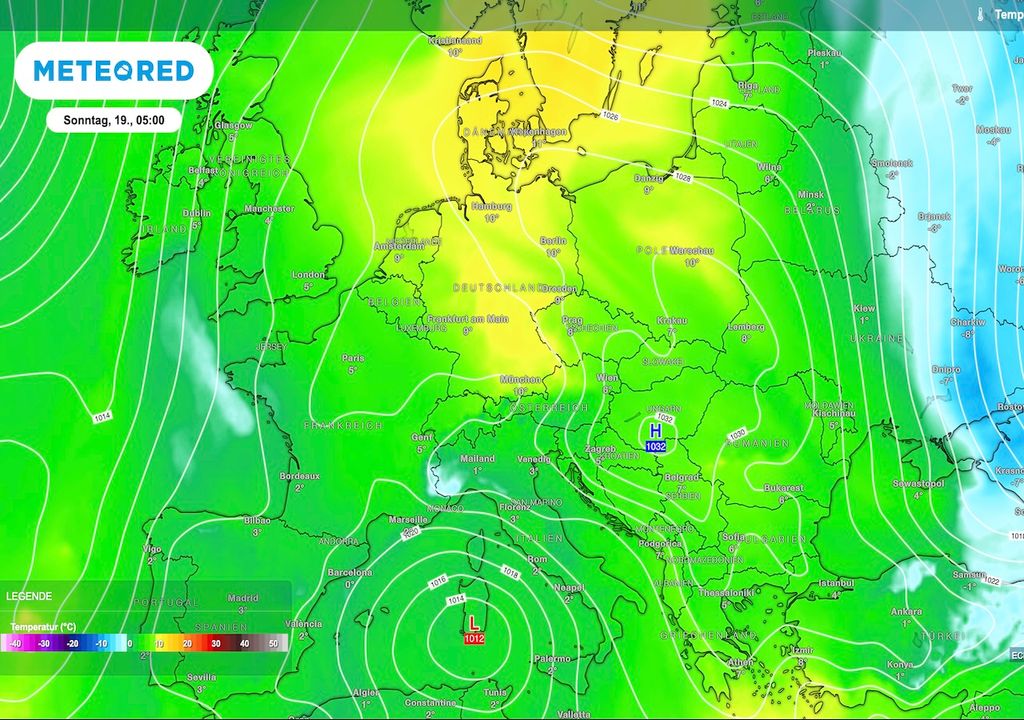 Nachts wird es jedoch wieder deutlich kälter, da die Grenzschicht eine effiziente nächtliche Ausstrahlung verhindert. Besonders in den Alpentälern kann es dann bis zu -10 Grad kalt werden. Die kalte Luft bleibt in den Niederungen durch die stabile Grenzschicht „eingeschlossen“, was zu starkem Frost führt.