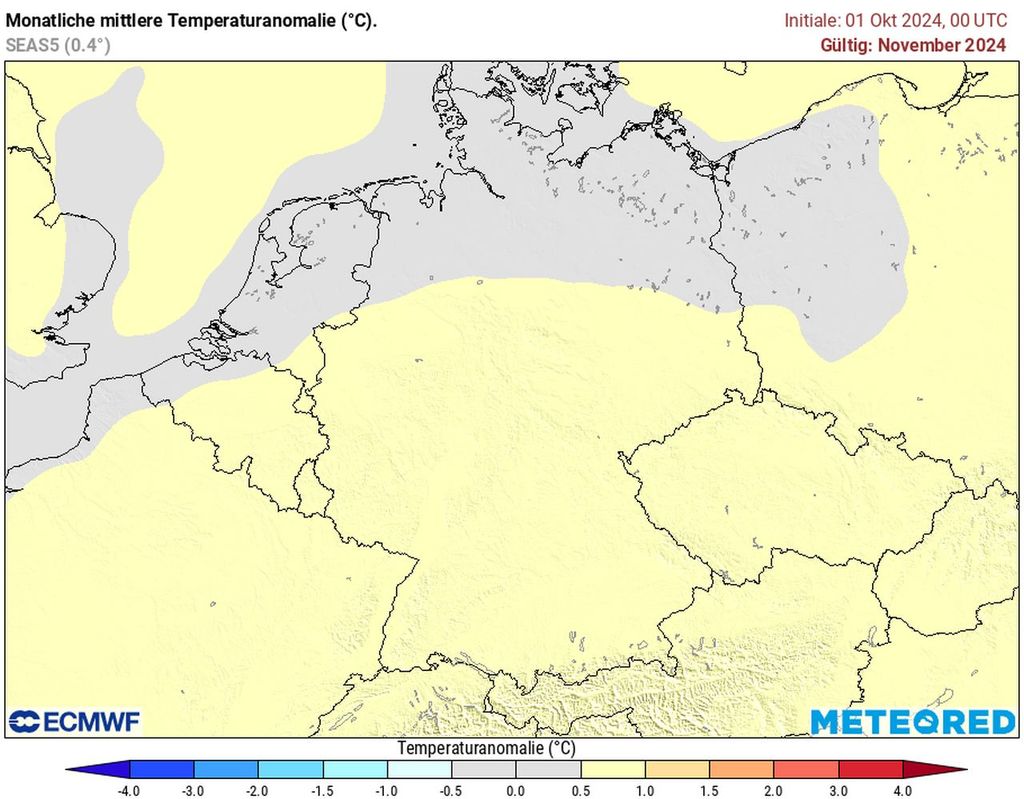 Auch das ECMWF rechnet überwiegend mit einem warmen November. Das spart natürlich Heizkosten und dürfte viele Menschen freuen. Allerdings betragen die Abweichungen beim europäischen Wettermodell im November maximal 1 Grad. Im Norden soll der Monat sogar ausgeglichen ausfallen.