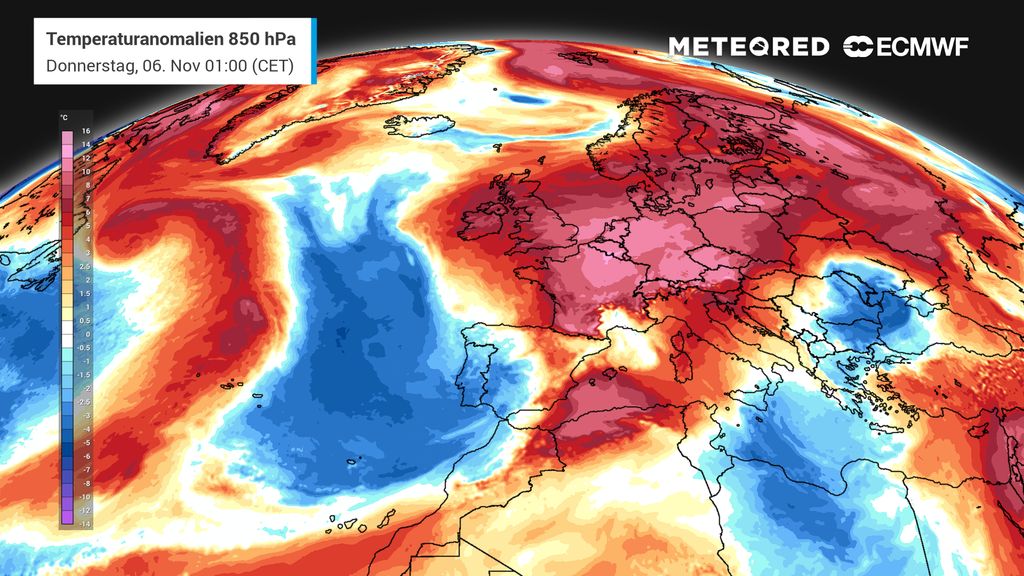 Deutschland unterliegt einem atmosphärischen Einfluss Anfang November, der sich anfühlt wie Wetter im April. Statt Nebel, Frost und grauer Melancholie bringt der Herbst Sonne, Wärme und fast schon frühsommerliche Luft. Die thermischen Wetterkarten leuchten in Orangerot und Rot – Farben, die eigentlich im Sommer zu Hause sind. Insbesondere die Darstellungen der Anomalien zeigen tiefrote Töne.