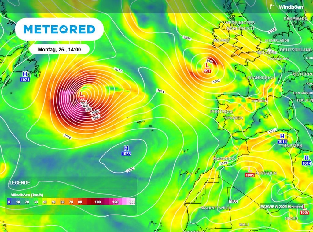 Die Britischen Inseln werden als erste von Erin betroffen sein. Dort rechnet man mit orkanartigen Böen, heftigem Regen und massiven Störungen im Alltag. Irland, Schottland und England dürften ab Beginn der nächsten Woche eine stürmische Wetterlage erleben, die Verkehrsprobleme, Stromausfälle und Schäden an Gebäuden mit sich bringen kann. Besonders Küstenregionen sind gefährdet, denn der ex-Hurrikan schiebt zusätzlich hohen Wellengang nach Westen. Auch wenn Erin formal kein Hurrikan mehr ist, sind die Wetterauswirkungen in Europa oft sogar großflächiger, da sich das Tief mit den bestehenden Strömungen verbindet und dadurch an Reichweite gewinnt.