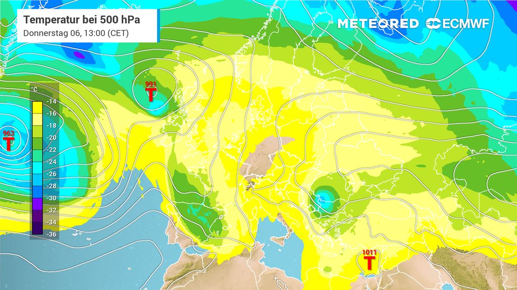 Bereits zur Wochenmitte verstärkt sich der Hochdruckeinfluss über Mitteleuropa. Warme Luft aus südlichen Breiten strömt in höheren Schichten nach Norden und stabilisiert die Atmosphäre.