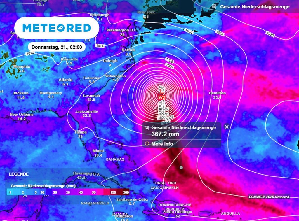 Aktuelle Prognosen deuten darauf hin, dass Erin nach Norden abdrehen und dabei auch die Region um Bermuda gefährden könnte. Für die US-Ostküste gilt momentan zwar keine akute Landfall-Gefahr, doch auch ein Vorbeiziehen in größerer Entfernung würde ausreichen, um hohe Wellen, gefährliche Strömungen und Küstenüberflutungen auszulösen. Experten warnen: Selbst ohne direkten Treffer kann ein Hurrikan dieser Stärke für erhebliche Schäden und Gefahren sorgen.