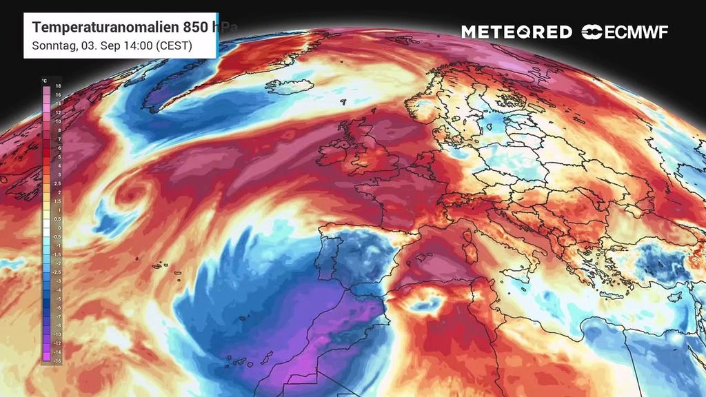 Es baut sich eine typische Omega-Wetterlage über Europa auf. Das Hoch legt sich über unsere Köpfe und hält von allen Seiten die Tiefs fern. Das könnte auch noch eine ganze Weile so bleiben. Perfektes Bade- und Wanderwetter stellt sich nochmal ein. Besonders im Südwesten können die Freibäder nochmal in eine satte Verlängerung gehen. Dort werden täglich Höchstwerte bis zu 30 Grad erreicht werden. Lokal sind am Oberrhein auch noch höhere Werte möglich. Das Hoch bewegt sich bis zum nächsten Wochenende kaum von Ort und Stellen.