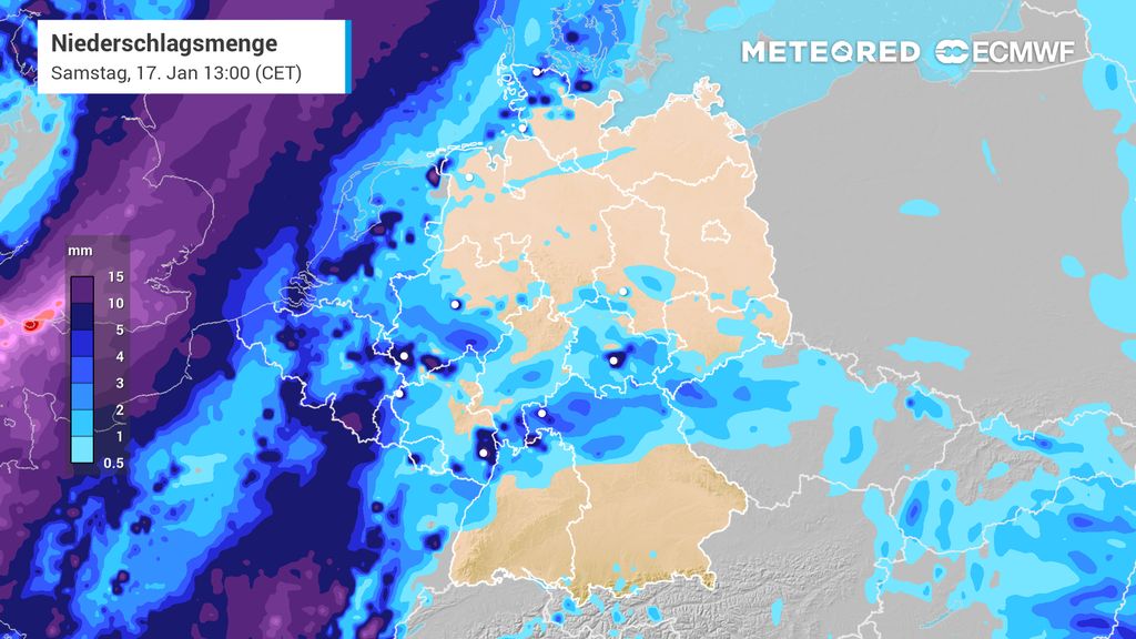 Bis dahin bleibt das Wetter erstaunlich unspektakulär. Milde Luft dominiert, häufig zwischen 2 und 13, lokal 14 Grad, mit wenig Niederschlag. Der Nordosten hält sich kühler, der Südwesten deutlich wärmer.