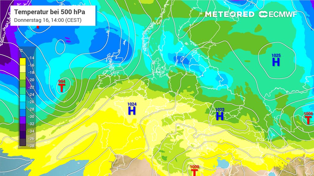 Am Boden unterstützt ein Hochdruckkeil diese Entwicklung, sodass in vielen Regionen zunächst schon fast sommerliche Wettererscheineungen evoziert werden.
