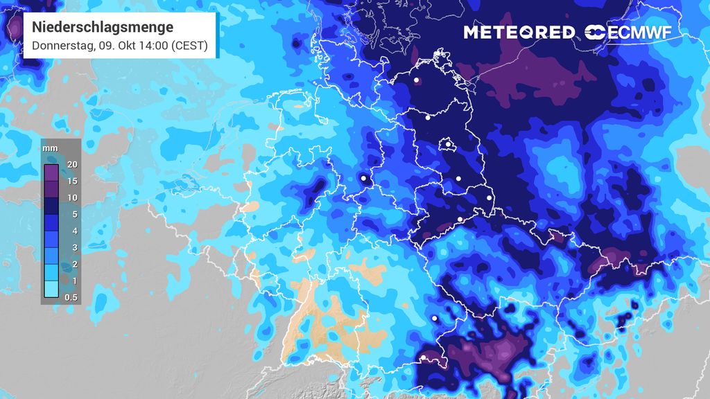 Der Dienstag bringt sich mit einem Mix aus dichten Wolken und regionalem Regen in Stellung. Im Südosten klingt der Dauerregen zwar langsam ab, doch von der Nordsee ziehen neue Schauer landeinwärts, die sich bis in den Osten ausbreiten. Im Südwesten zeigt sich hingegen zeitweise die Sonne – ein kleiner Vorgeschmack auf ruhigere Tage. Die Temperaturen liegen im Südosten bei 12 bis 15 Grad, sonst werden 15 bis 20 Grad erreicht. Der Wind weht schwach bis mäßig, an der Nordsee auch frisch aus westlichen Richtungen.