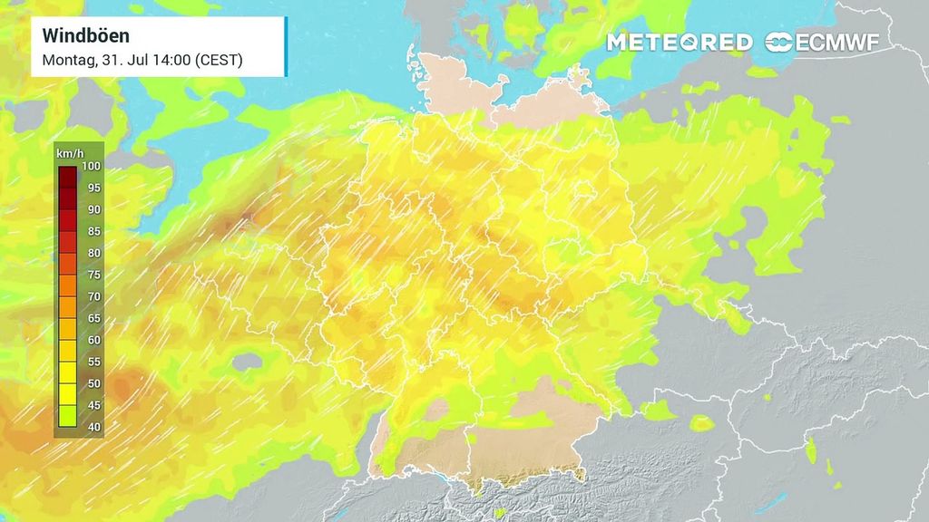 Die Bäume sind dicht belaubt und bieten eine gute Angriffsfläche für den Wind. Der drückt in das Laubkleid rein und schon können Äste abbrechen und Bäume umstürzen. Stellenweise kann das ziemlich gefährlich sein. Aus dieser Herbstnummer kommen wir in Deutschland auch so schnell nicht raus. Schaut man sich die mittelfristigen Prognosen an, dann ändert sich bis Mitte August daran erstmal gar nichts mehr. Was danach passiert, kann heute noch keiner sagen.