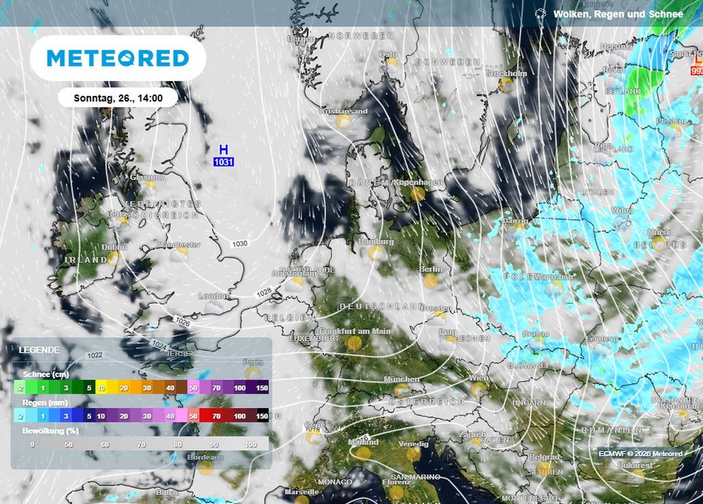 Ja, auf der Wetterkarte thront ein Hoch über Mitteleuropa. Klingt nach Frühling satt. Ist es aber nicht! Der Knackpunkt: Der Hochdruckkern sitzt westlich von Deutschland – nicht über uns.