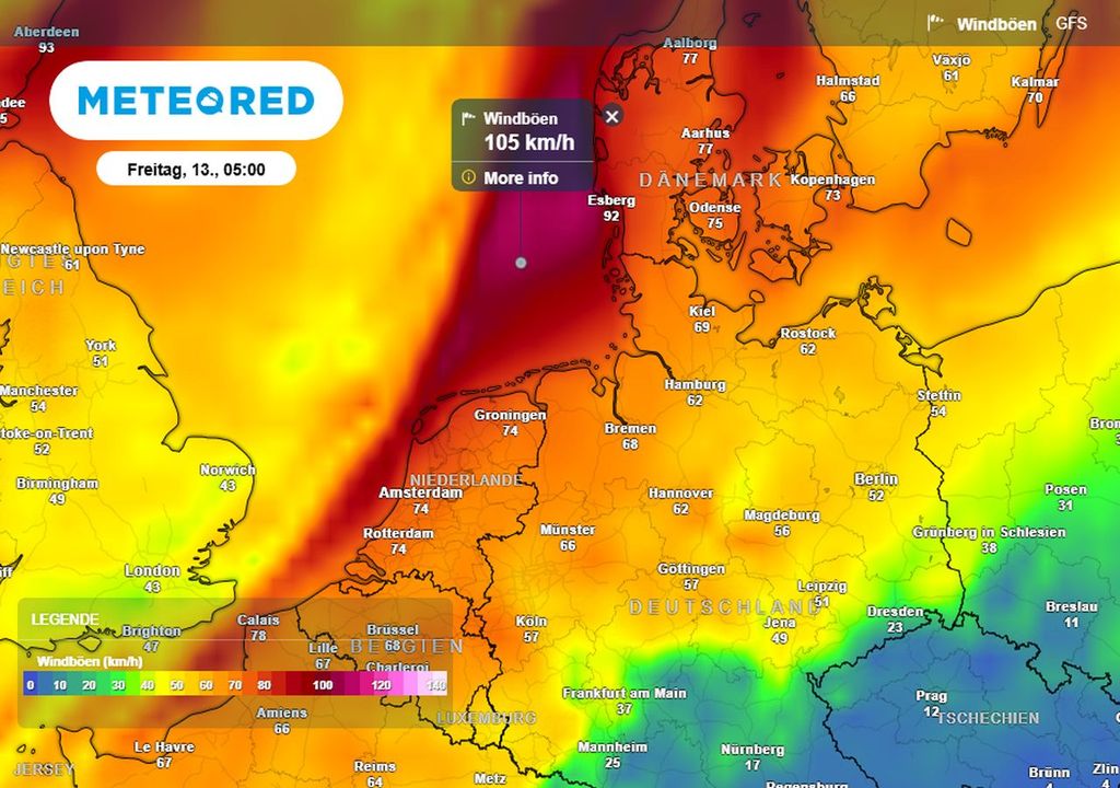 In der Nacht zum Freitag beginnt der Frühlingssturm dann spürbar zuzulegen. Besonders über der offenen Nordsee sowie entlang der nordfriesischen Küste erreicht der Südwestwind deutlich höhere Geschwindigkeiten. Dort sind Sturmböen zwischen 75 und 90 km/h möglich.